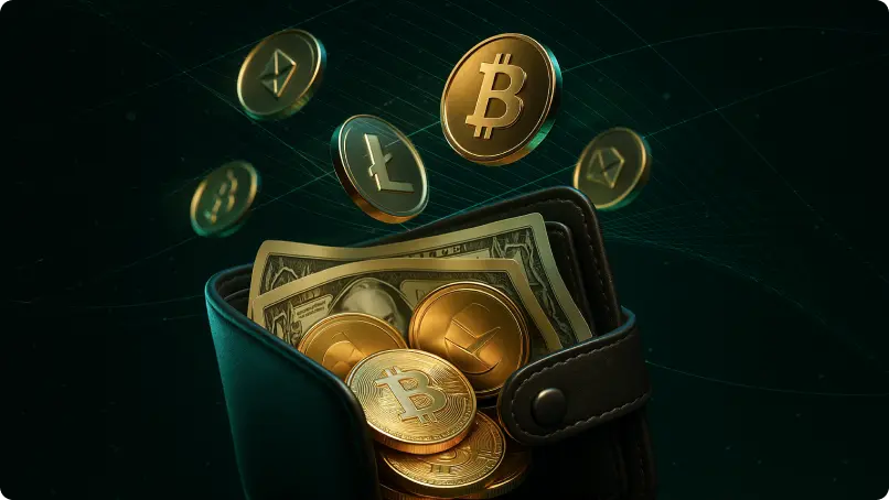 Nessuna attesa di giorni e settimane o pagamento di oltre $50 per trasferimenti. Tieni fiat e crypto in un singolo dashboard per spendere online e di persona.