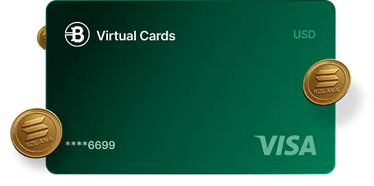 Disfruta de más de 250 servicios con una tarjeta de débito aprobada automáticamente cargada a tu SOL y otras billeteras de criptomonedas. Gasta hasta $2 millones al mes.